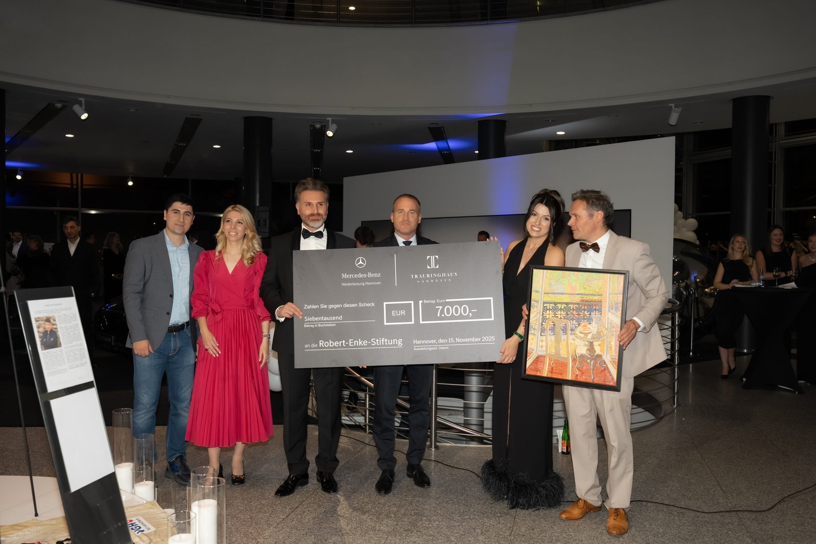 Mercedes-Benz und das Trauringhaus Hannover rundeten die Spendensumme mit zusätzlichen 7.000 € für herzkranke Kinder auf. Zudem wurde ein Gemälde des Künstlers Tigran Petrossiantz versteigert, das Henning Stark für 1.400 € erwarb – ebenfalls zugunsten der Robert-Enke-Stiftung.