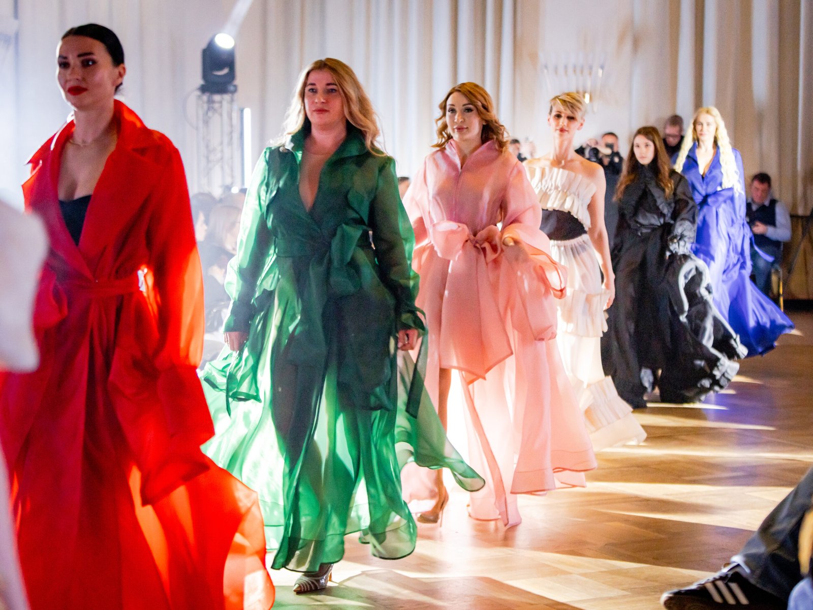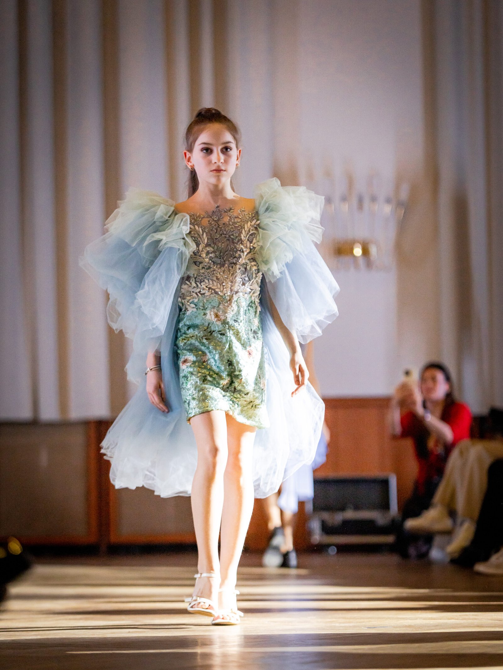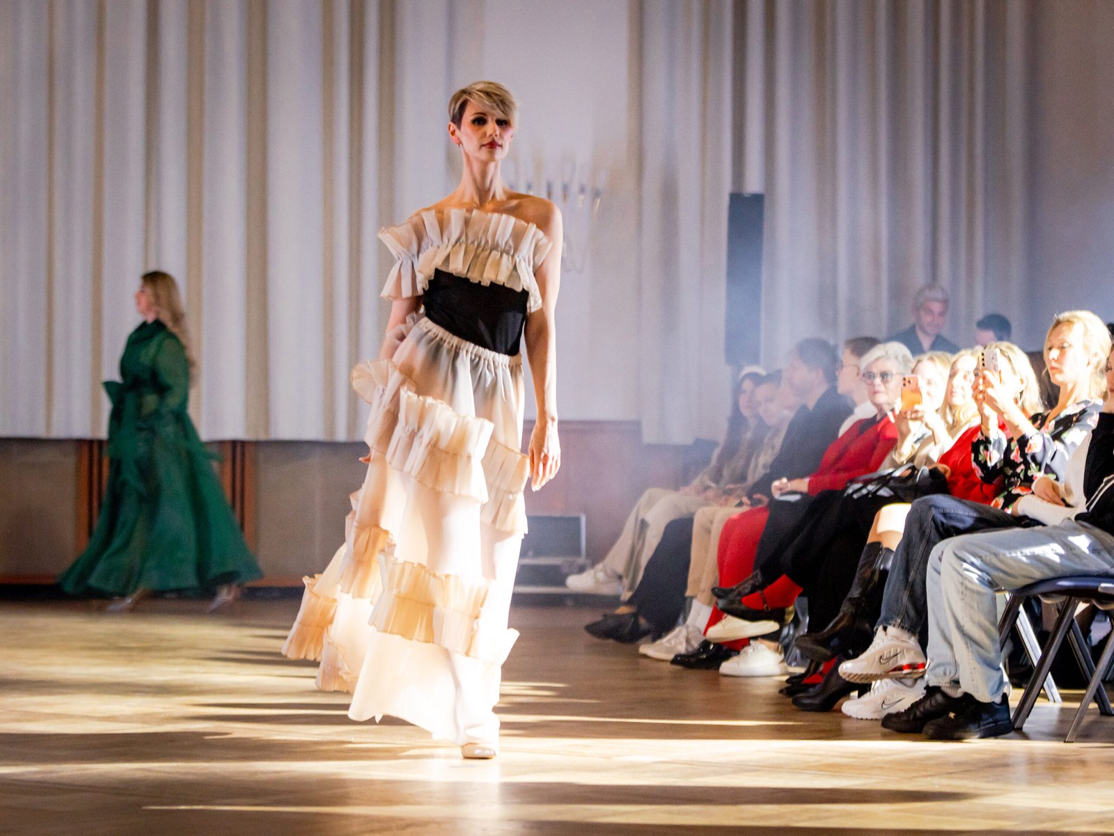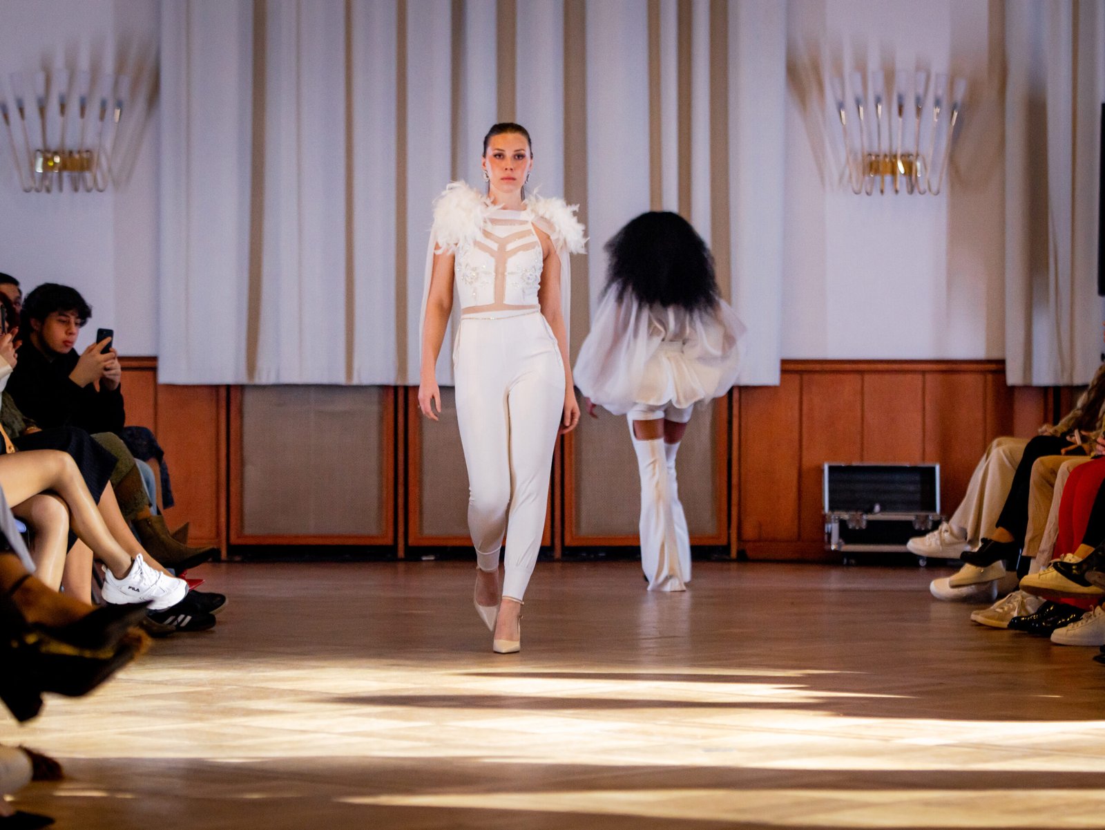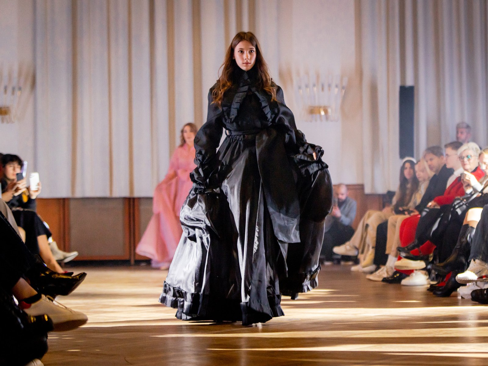 Die Looks spiegeln genau diese Vielschichtigkeit wider. Die gezeigten Kollektionen bewegen sich zwischen opulenter Inszenierung und reduzierter Klarheit. Dramatische Silhouetten mit voluminösen Ärmeln, Tüll und fließenden Stoffen treffen auf minimalistische, körpernahe Designs, die durch präzise Schnitte und ruhige Linien überzeugen. Mode wird hier nicht nur präsentiert, sondern bewusst inszeniert.