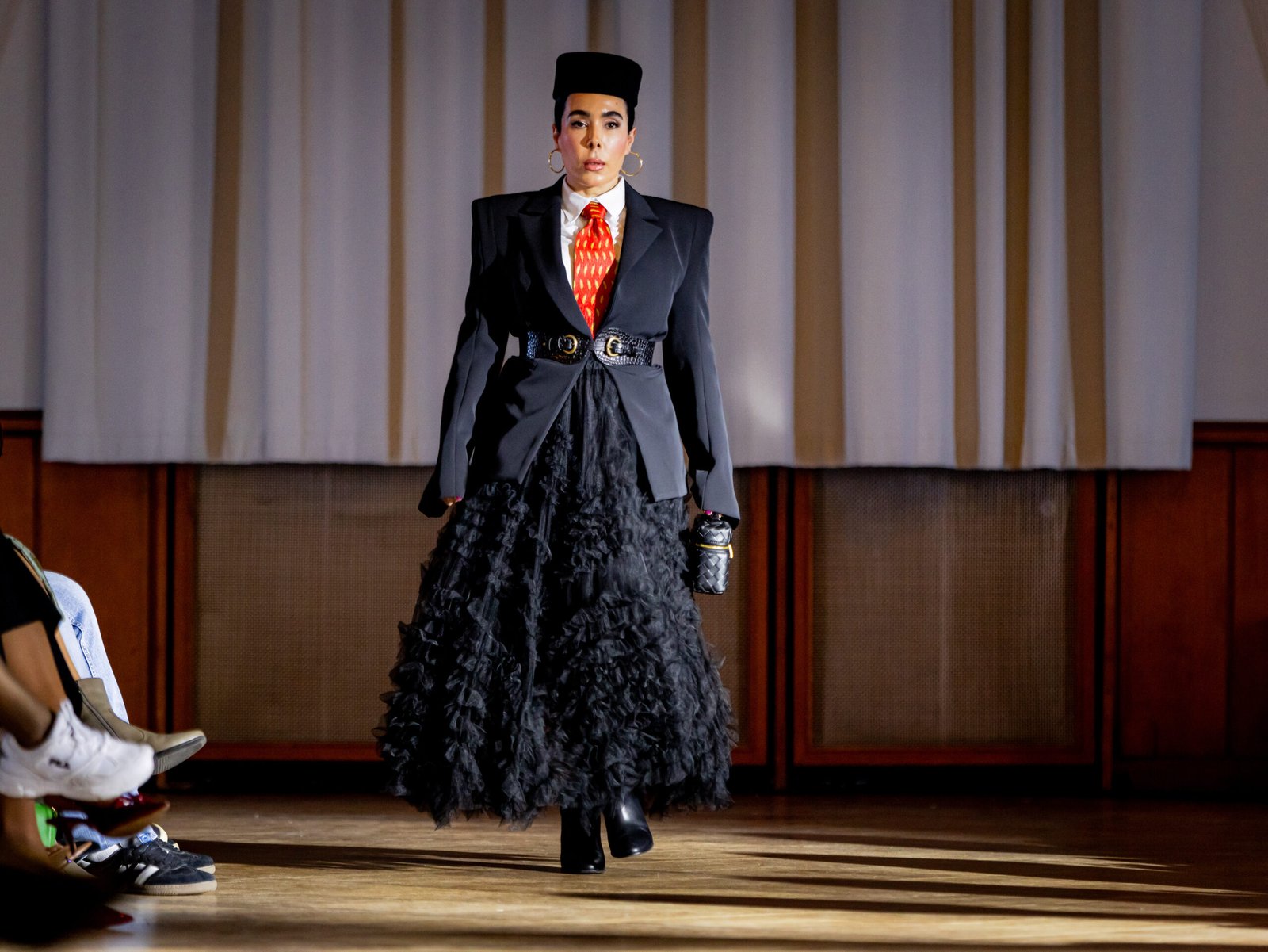 Auch die Materialität erzählt ihre eigene Geschichte. Glanz, Spitze, Tüll und feine Stoffe treffen auf strukturierte, fast architektonische Elemente. Diese Kontraste verleihen den Looks eine besondere Spannung und unterstreichen den experimentellen Charakter der Kollektionen.
